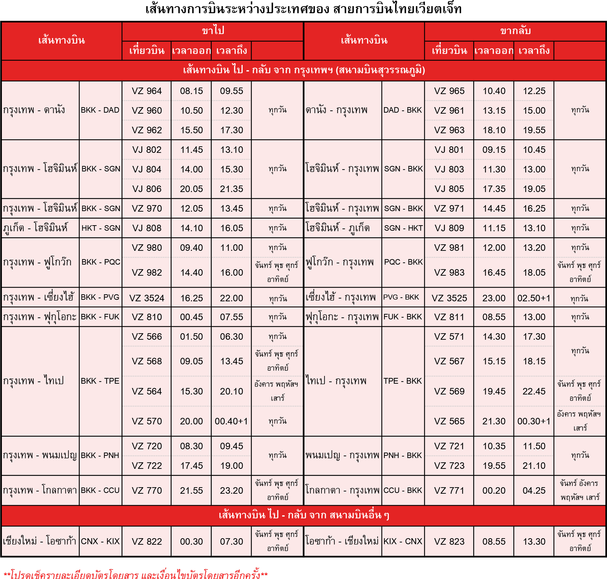 *ตารางบินอาจมีการปรับเปลี่ยนในบางวัน สามารถตรวจสอบได้ที่ www.th.vietjetair.com